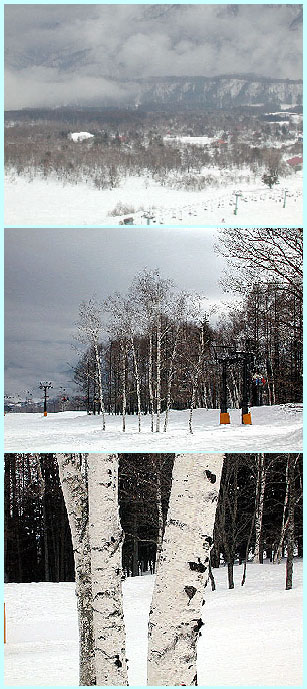 | ゲレンデのすぐ脇にもご覧のような白樺があります。冬山の撮影に今日もデジカメが大活躍です!きれいでしょ! | |