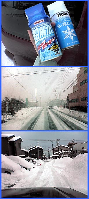 寒冷地ではコレがなくては!!冬の必需品!クルマのフロントガラスの雪が凍結した場合は解氷スプレーを使います。 |