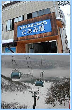山ろくで準備運動&ひと滑りしてから五竜テレキャビンで上部へ向います。この日は土曜日ですが大きなスキー場なのでリフト・ゴンドラの待ち時間はありません。 |