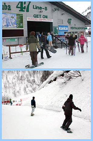 | 今シーズンの冬山は年末年始の大雪のおかげで積雪が豊富で昨年のような雪不足に悩むゲレンデはまずありません。今年に入り1月半ばでありながら温暖で3月中旬の陽気の日もあれば、逆に冬型が強まり日中でも0度を下回る厳しい寒さの日もあります。スキーヤー・ボーダーにとっては冬型の陽気でゲレンデのパウダースノーを楽しめる天候が一番望ましいワケですが、コレばっかりはまさに運を天にまかせるしかありません。そんな天候とゲレンデコンディションに期待しつつ今回は白馬にある白馬五竜スキー場とHakuba47ウィンタースポーツパークへ行ってきました。 |