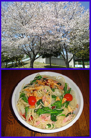 | 菜の花スパゲティ・・・ 何年ぶりか忘れましたが、久しぶりに自分でスパゲティを作りました。昔は毎日みたいに自分で作ってたのに、やっぱり実家に戻るとダメですね^^;台所に立つことすら無くなりました。 千葉県産の「菜の花」を使っています。赤いのはミニトマトです。ちなみに味の方は健在!パスタはもちろんアルデンテだ! |