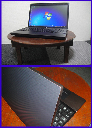 寝床で使うノートPCを買いました。 レトロなちゃぶ台にWindows7です! ちゃぶ台はおそらく50年以上も前から家にあるモノです。シュールな組み合わせですがサイズが丁度良く、まだまだアリですねコノちゃぶ台は! 半世紀分の小さなキズがあり、片方の脚にグラつきも見られます。(星一徹がひっくり返したワケではありません恐らく・・・)地味に頑張ってる感じに心うたれます。 ノートPCのモニター裏面にはクルマいじりで余ったカーボンフィルムを張り、見た目ちょっとゴージャスに見えます。LANケーブルを枕もとまで引っ張ってコレで布団の中でネットサーフィンできます。 |