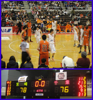 船橋アリーナにて・・・ 千葉ジェッツのホームゲーム最終戦に行ってきました。今シーズンから新規参入した千葉ジェッツですが、開幕当初は強豪チームと互角に戦い好調でしたが、12月頃から負けが続いてしまい今シーズンは結局9位に終わりました。・・・プレーオフには進めません。 この日も結構いい試合してたんですが大接戦の末、わずか2点差で残念ながら負けてしまいました。それもブザービータで決められました・・・点数的にディフェンスも悪くなかったんだけど・・・微妙に、うぅ〜ん。。。 選手個人では良いメンバーが揃っているので来年に期待大です。 |